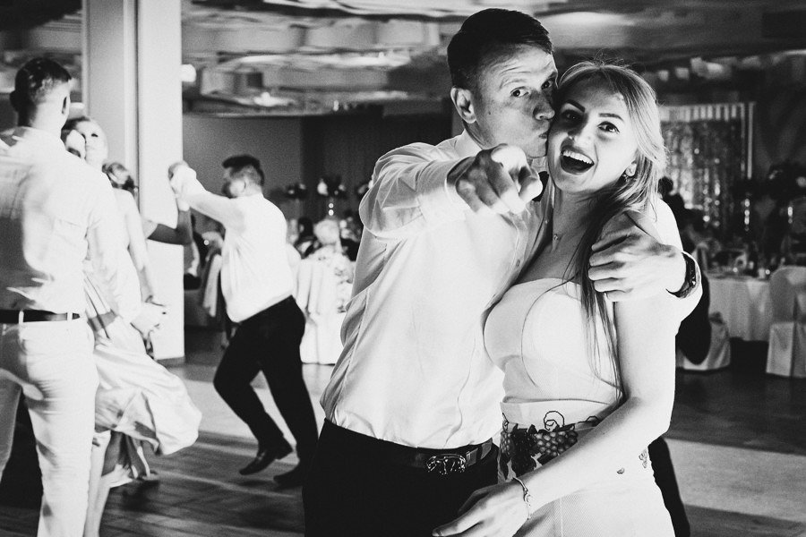 Wielu gości na ślubie Dominik i Pawła to świetni tancerze a para młoda przodowała. Parkiet był cały wieczór przepełniony bawiącymi się gośćmi którzy po jakimś czasie zapomnieli że jest fotograf na sali. Uwielbiam te momenty gdyż to jest idealny czas gdy mogę uchwychć te najfajniejsze momenty z wesela tak ważne dla młodej pary jak również i gości.