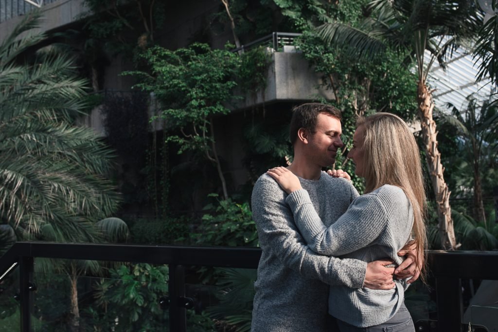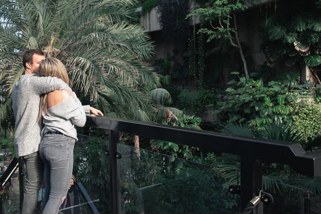 The Barbican is an amazing place for engagement shoot where always is something new to discover and the light is just incredible. The Conservatory is one of my favourite London’s treasure where I love to photograph. Despite how busy it is there, you can always find a quiet spot between tropical plants and trees to create intimacy in the photos. Engagement photo shoot is a great experience for couple to be in the front of the camera and work with professional photographer.